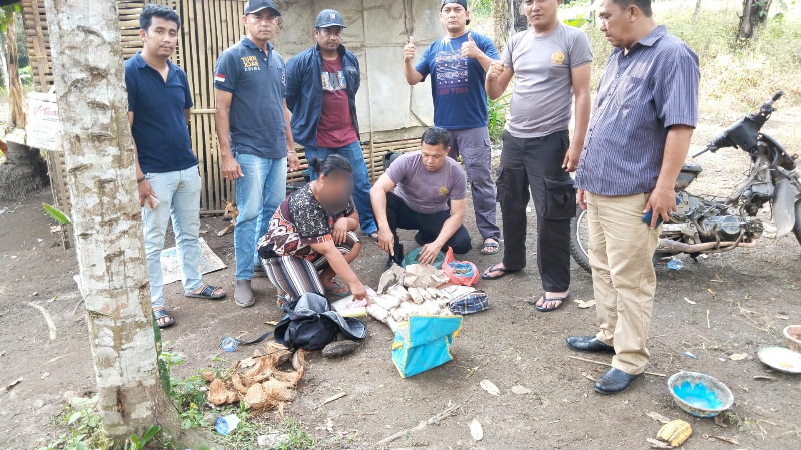 Pada saat penggerebekan di dalam gubuk petugas melihat HG,41 istri tersangka sedang duduk dan langsung mengamankan tas ransel miliknya itu, setelah diperiksa di dalam tas ditemukan daun ganja kering, kemasan kecil sebanyak 10 bungkus, kemasan besar sebanyak 9 bungkus, kemasan dalam plastik kecil sebanyak 2 bungkus, uang senilai Rp1.650.000, ATM BRI, ATM Mandiri dan 1 handphone merek Nokia.
