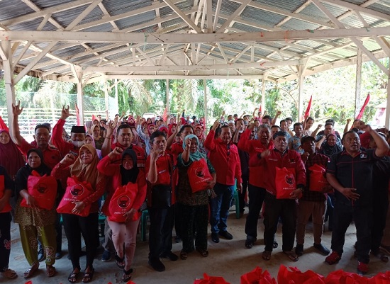 AEKKANOPAN (Waspada): 1000 paket sembako diberikan kepada warga dan kader dalam kegiatan Safari Ramadan Ketua DPD PDI Perjuangan Sumut, Rapidin Simbolon ke Kabupaten Labura.