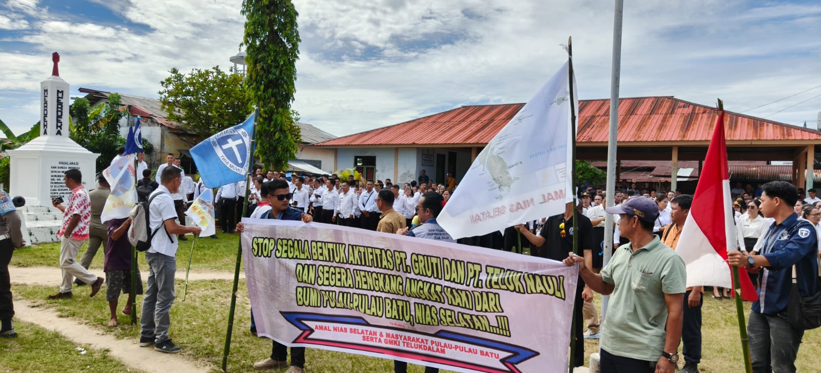 “Maka untuk itu, kami memohon atensi dan dukungan Pemerintah Kabupaten Nias Selatan, baik secara administratif maupun secara de facto, untuk bersama-sama menghentikan seluruh aktivitas PT Gruti dan PT Teluk Nauli di wilayah Kepulauan Batu,” ujar Rindu Halawa.