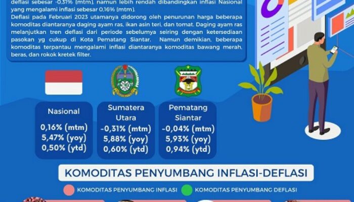 PEMATANGSIANTAR (Waspada): Berdasarkan perkembangan Indeks Harga Konsumen (IHK) umum, Kota Pematangsiantar mengalami deflasi -0,04 persen (mtm) periode Februari 2023.