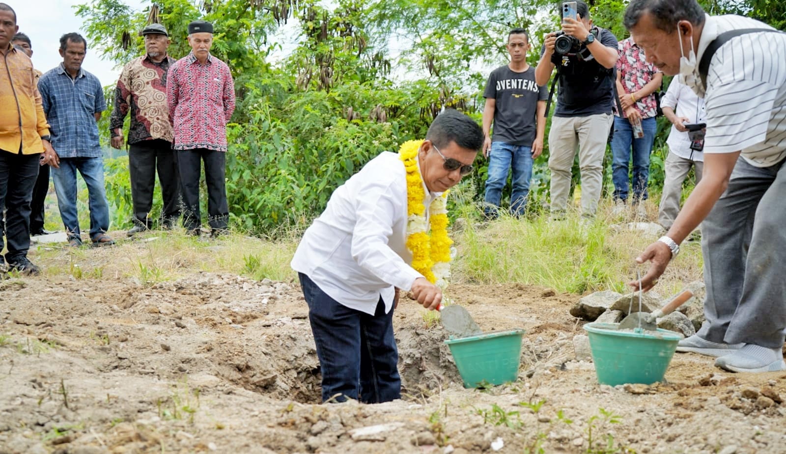 PARAPAT (Waspada): Bupati Simalungun Radiapoh Hasiholan Sinaga melakukan peletakan batu pertama pembangunan RSUD Parapat dan pelayanan deteksi Kanker dini (Papsmear) di Jln Ompu Ranjo Sinaga, Parapat, Kecamatan Girsang Simpanganbolon, Kabupaten Simalungun, Jumat (9/2/2024).