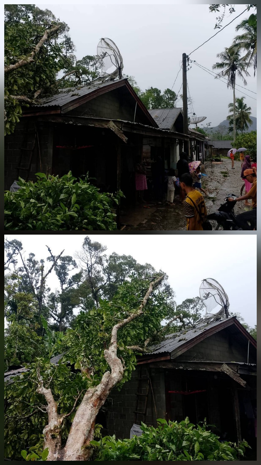 Kemudian di Desa Sihotang Hasugian Tonga, Kecamatan Parlilitan, Minggu (22/3/2026) pukul 16.00 WIB, rumah milik Rusminta Manullang juga tertimpa pohon dan rusak berat.
