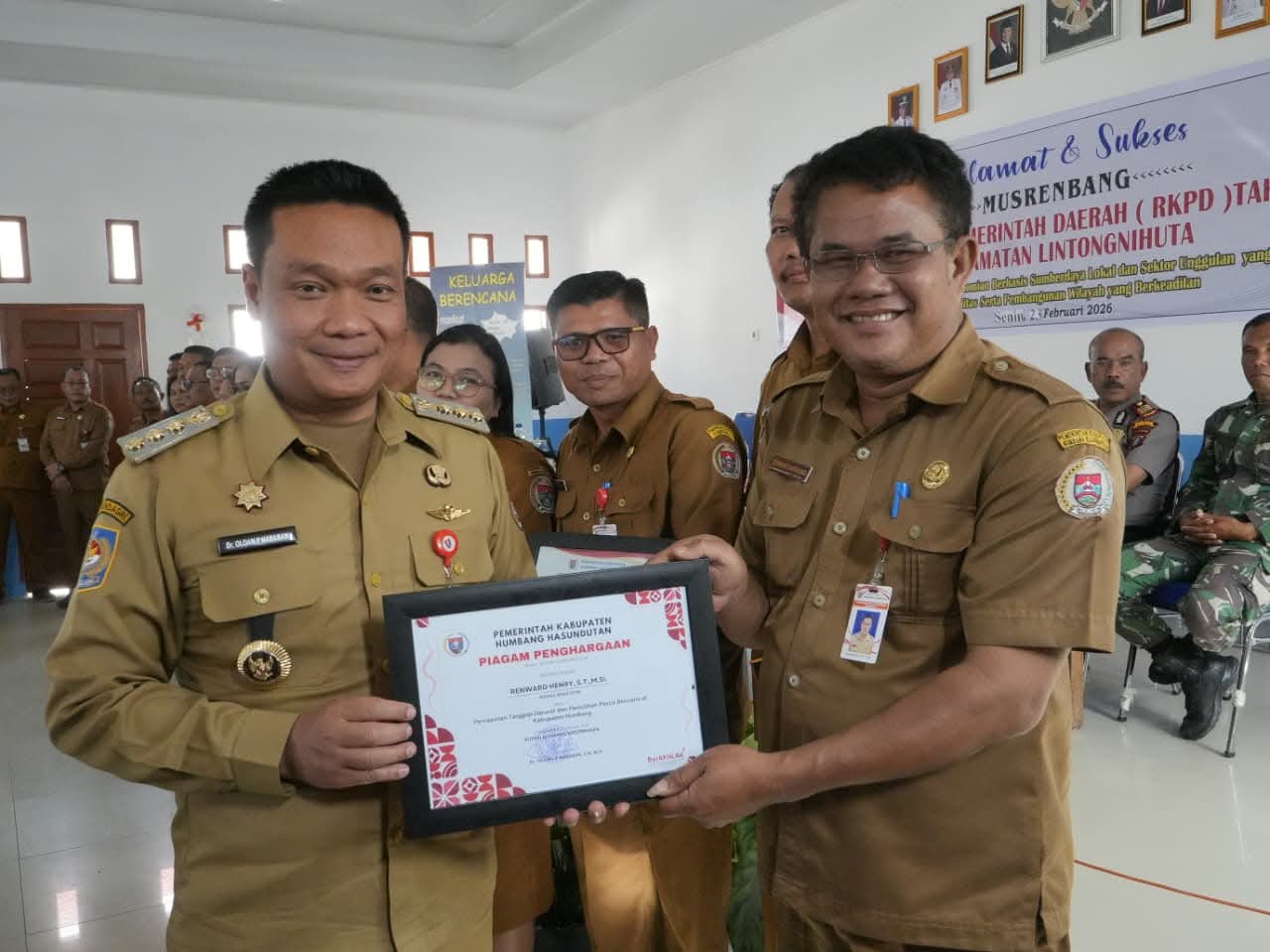 HUMBAHAS (Waspada.id): Pemerintah Kabupaten Humbang Hasundutan (Humbahas) melaksanakan Musyawarah Perencanaan Pembangunan Rencana Kerja Pembangunan Daerah (Musrenbang RKPD) 2027 di Kecamatan Lintongnihuta pada Senin (23/2/2026), di mana Bupati memberikan penghargaan kepada ASN berintegritas dan mengajak seluruh pihak untuk bersama membangun daerah.
