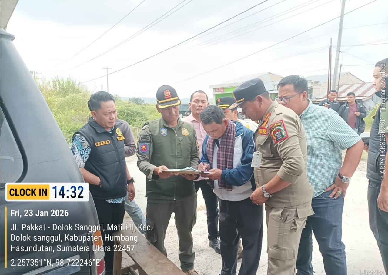DOLOKSANGGUL (Waspada.id): Pemerintah Kabupaten Humbang Hasundutan (Humbahas) melalui Satpol PP melaksanakan penertiban dan pembongkaran papan reklame yang tidak sesuai peraturan serta berpotensi menimbulkan gejolak di Tonga Saba, Desa Matiti I, Kecamatan Doloksanggul, Jumat (23/1/2026).