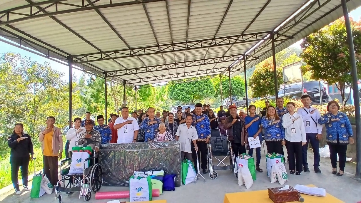 Bantuan yang diserahkan meliputi kursi roda, tongkat kaki tiga, alat bantu dengar, nutrisi, dan sandang.