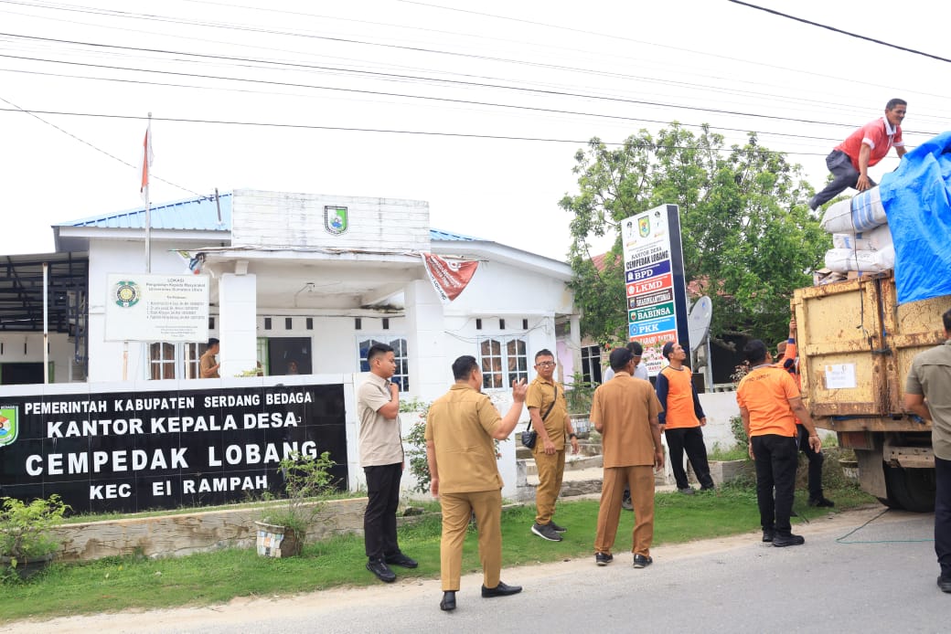 Penyaluran bantuan dilakukan langsung oleh Bupati Sergai H. Darma Wijaya kepada warga terdampak banjir di Kantor Desa Cempedak Lobang, Kecamatan Sei Rampah, Senin (29/12/2025).