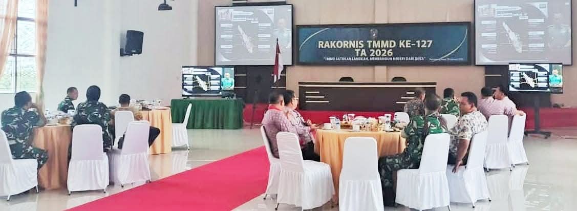 PAMATANG RAYA (Waspada.id): Pemerintah Kabupaten Simalungun dan Komando Distrik Militer (Kodim) 0207/Sml mengikuti Rapat Koordinasi Teknis (Rakornis) persiapan pelaksanaan TNI Manunggal Membangun Desa (TMMD) Ke-127 Tahun Anggaran 2026. Kegiatan yang diadakan secara video conference melalui Zoom Meeting pada Kamis (29/01/2026) dari ruang Puskodal Kodim 0207/Sml di Pamatang Raya, Sumatera Utara, diikuti seluruh Kodim se-Indonesia yang akan melaksanakan program tersebut.