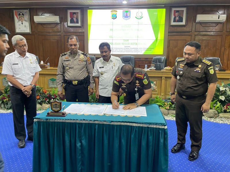 Kerja sama itu ditandai dengan penandatanganan perjanjian oleh Wali Kota Binjai Amir Hamzah, Kepala Kejaksaan Negeri (Kajari) Binjai Jufri Nasution SH MH, dan Kapolres Binjai, di Aula Pemko Binjai, Rabu (4/10).