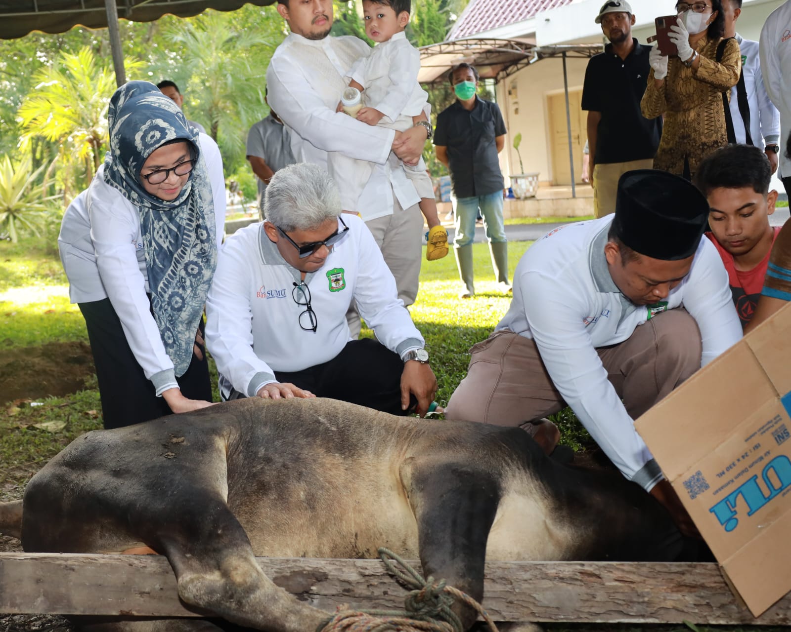 Dalam pelaksanaan kurban itu, keluarga Wali Kota turut berkurban satu ekor sapi dan pada kesempatan itu, Wali Kota mengucapkan terimakasih kepada Bank Sumut, PT Taspen dan Perumda Tirtauli.