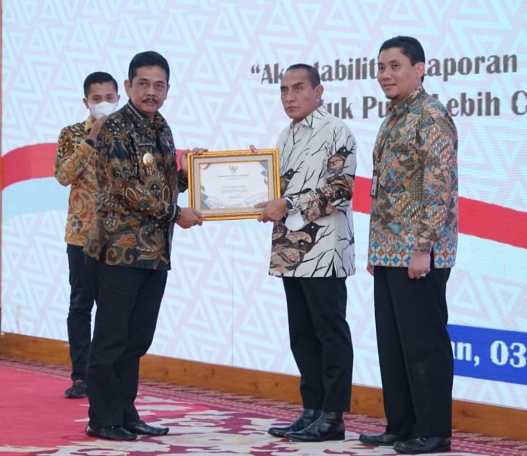Pj Wali Kota Tebingtinggi, Muhammad Dimiyathi, S.Sos M.TP menerima penghargaan Opini WTP dari Gubernur Sumatera Utara, H Edy Rahmayadi.