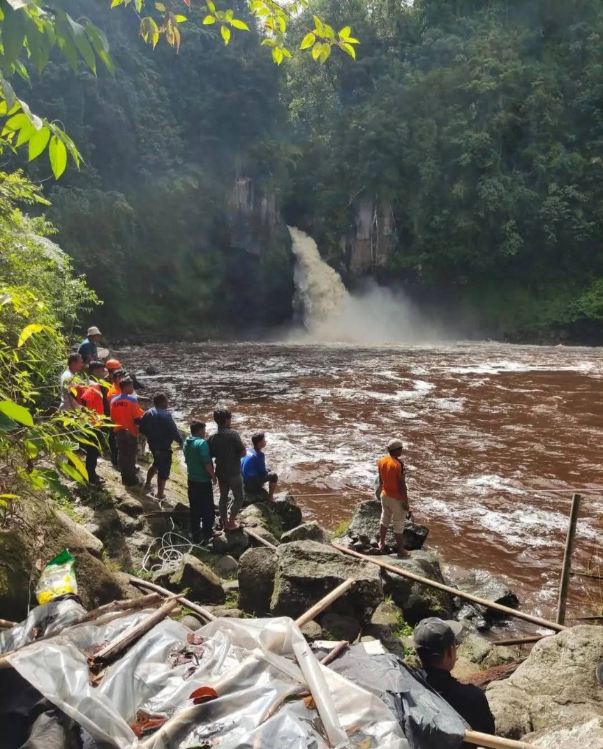 Pencarian dilakukan dengan menyusuri sungai sekitar Air Terjun Lae Une menggunakan perahu karet, kamera drone, serta pengamatan dari tepian sungai.
