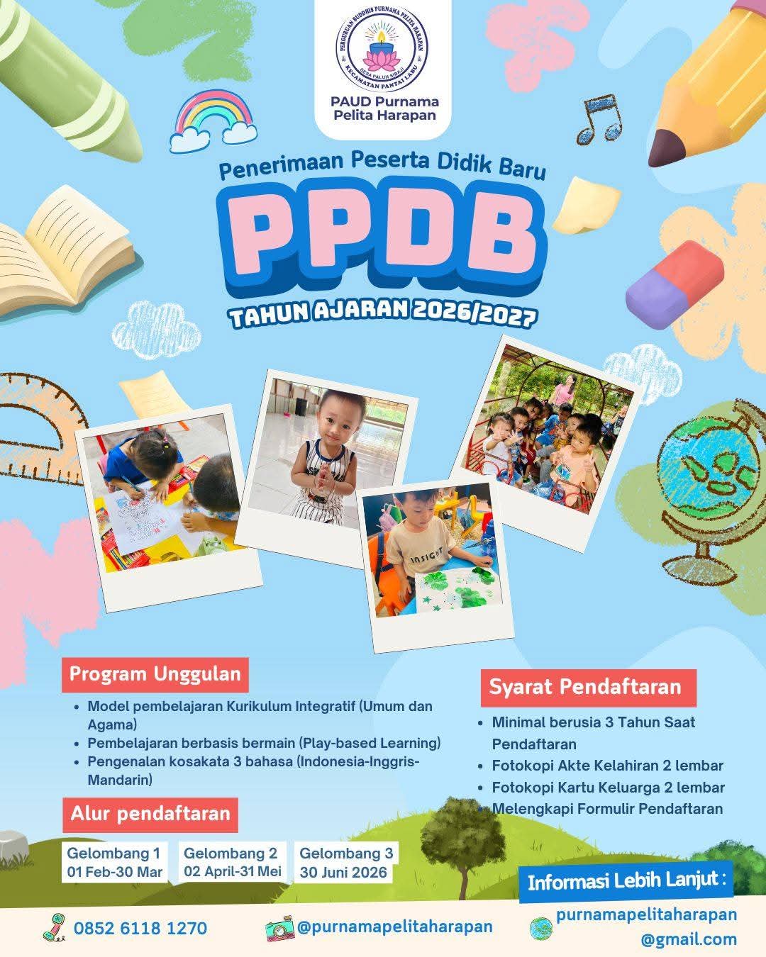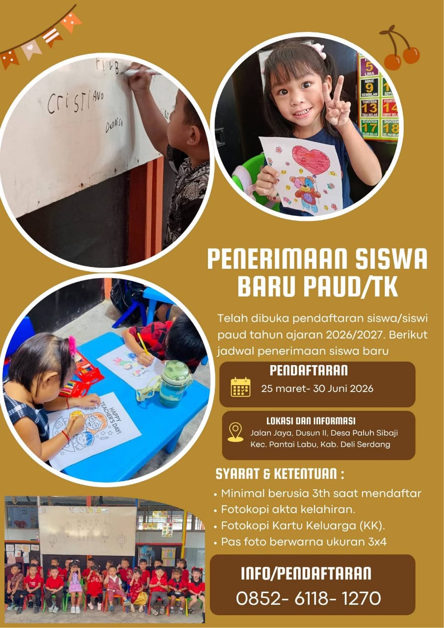 PANTAI LABU (Waspada.id): Sekolah Pendidikan Anak Usia Dini (PAUD) Purnama Pelita Harapan yang terletak di Desa Paluh Sibaji, Kecamatan Pantai Labu resmi membuka pendaftaran murid baru untuk tahun ajaran 2026–2027.