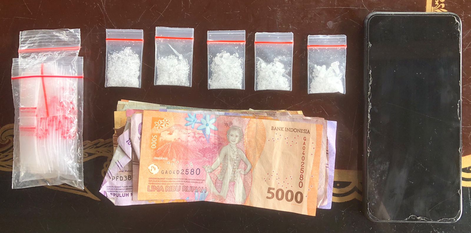 Dari tangan MA alias Piyan warga Nagori Bandar Pulo, Kec. Bandar, petugas berhasil menyita sebanyak 5,81 gram (berat bruto) diduga sabu dan barang bukti lainnya seperti uang hasil penjualan Rp. 245.000, 1 unit handphone warna hitam, 1 bundel plastik klip kosong.