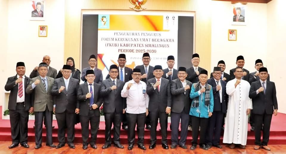 SIMALUNGUN (Waspada.id): Bupati Simalungun Dr H Anton Ahmad Saragih secara resmi mengukuhkan pengurus Forum Kerukunan Umat Beragama (FKUB) periode 2025-2030 di Balei Harungguan Djabanten Damanik Kantor Bupati, Pematang Raya, Senin (22/12/2025).