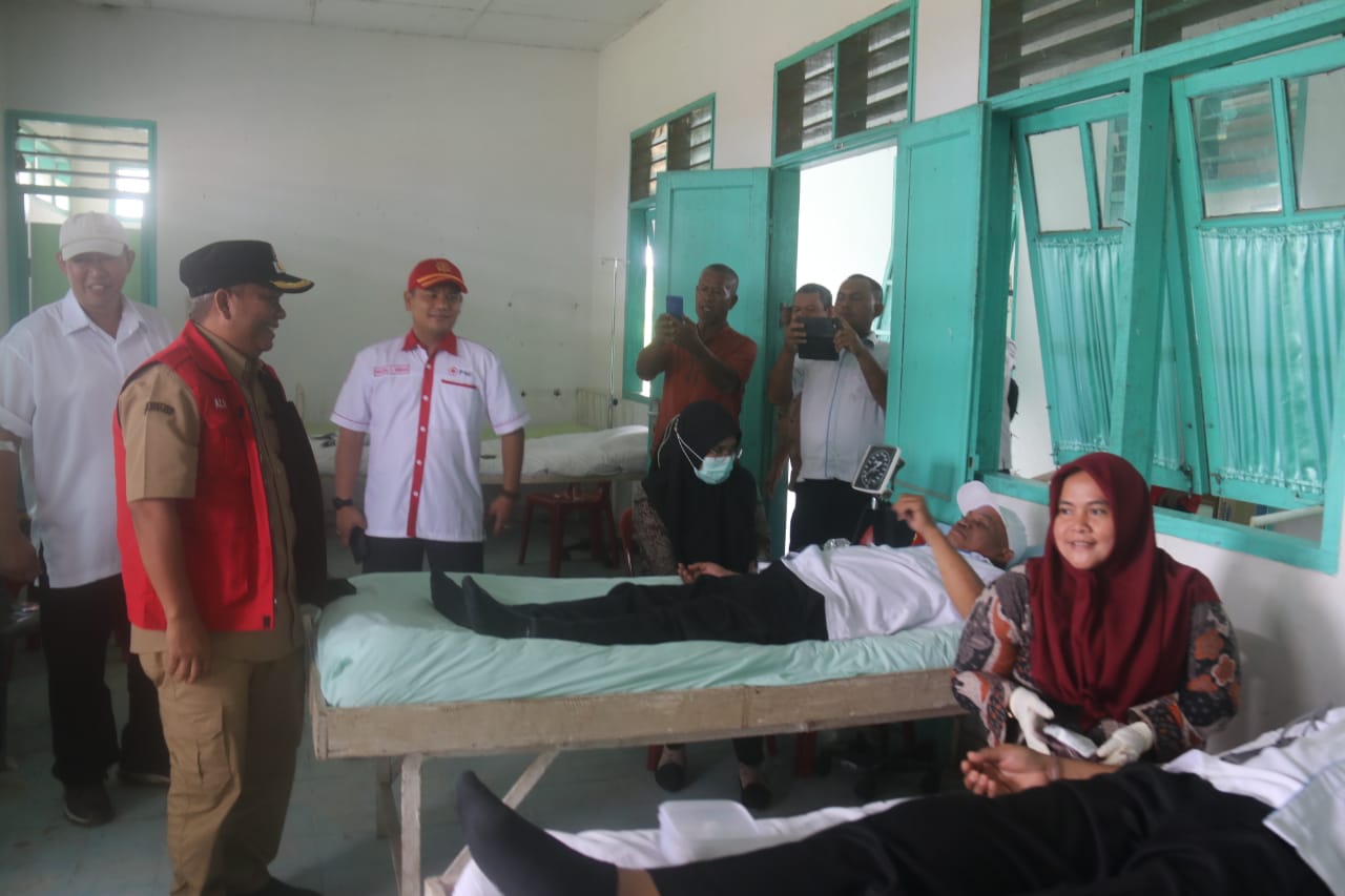 Keterangan foto; Plt. Bupati Padanglawas, drg H. Ahmad Zarnawi Pasaribu, CHt, MM, MSi, MH tinjau pelaksanaan donor darah di klinik Pratama PTPN IV unit kebun Sosa, yang dilaksanakan PMI Padanglawas kerjasama dengan IKBI PTPN IV unit kebun Sosa, Kamis (22/12)