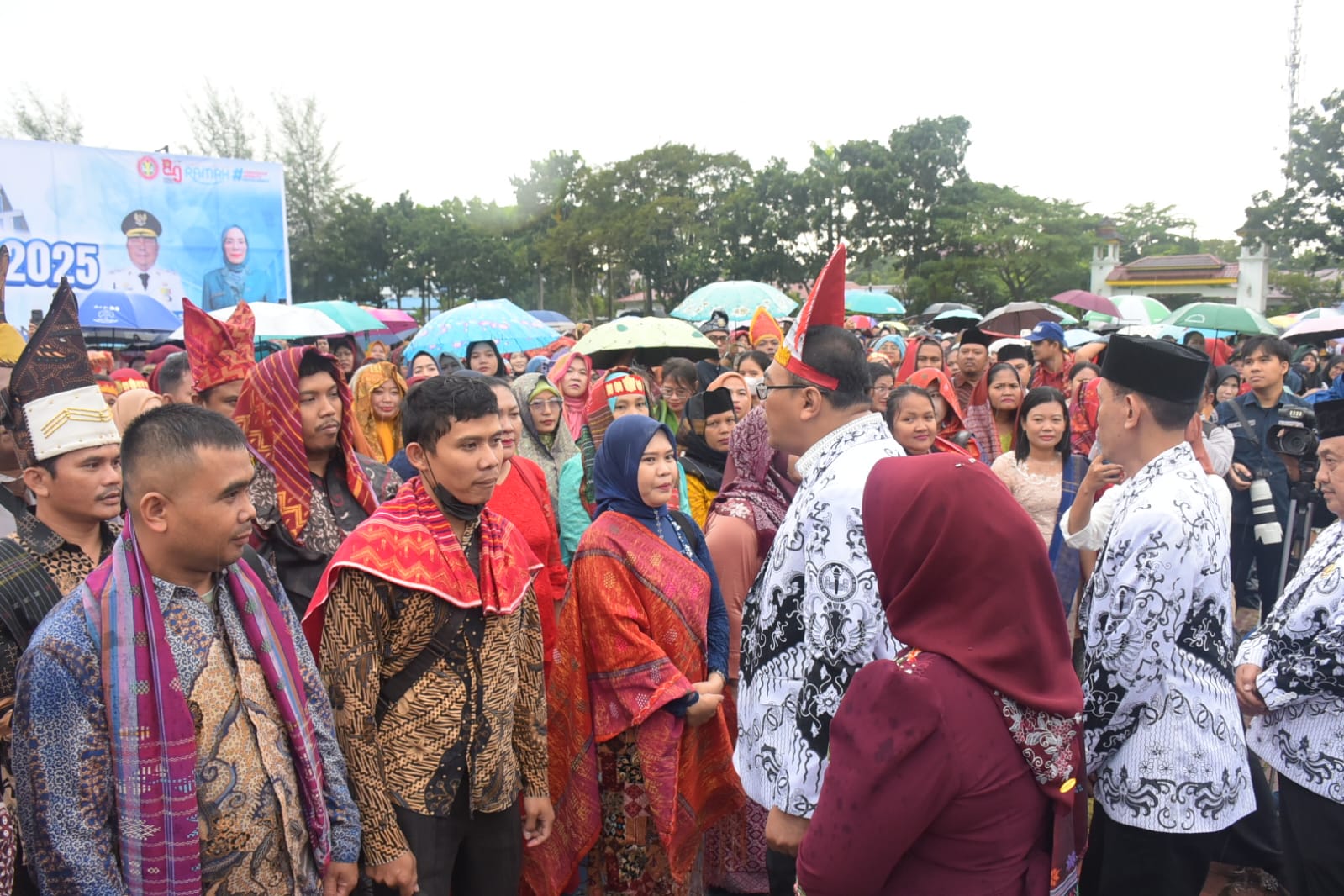 “Kebijakan transformasi guru, sentralisasi tata kelola. Telah lama kita mendengar keluhan mengenai rumitnya tata kelola guru, ketimpangan distribusi, ketidakjelasan status hingga isu keterlambatan tunjangan profesi seringkali menjadi beban yang mengganggu fokus utama Anda, yaitu mengajar,” kata Menteri Pendidikan Dasar dan Menengah (Mendikdasmen), Prof Dr Abdul Mu’ti MEd, dalam pidatonya yang dibacakan Bupati Deliserdang, dr. H. Asri Ludin Tambunan pada upacara Hari Guru Nasional (HGN) 2025 dan Hari Ulang Tahun (HUT) ke-80 Persatuan Guru Republik Indonesia di Alun-Alun Pemkab Deliserdang, Selasa (25/11/25).