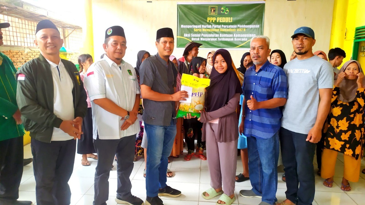 P.SIDIMPUAN (Waspada.id) : Dalam rangka memperingati Harlah (Hari Lahir) ke-53, Dewan Pimpinan Cabang (DPC) Partai Persatuan Pembangunan (DPC) Kota Padangsidimpuan santuni warga terdampak banjir di Kecamatan Padangsidimpuan Selatan, Selasa (17/2/2026).