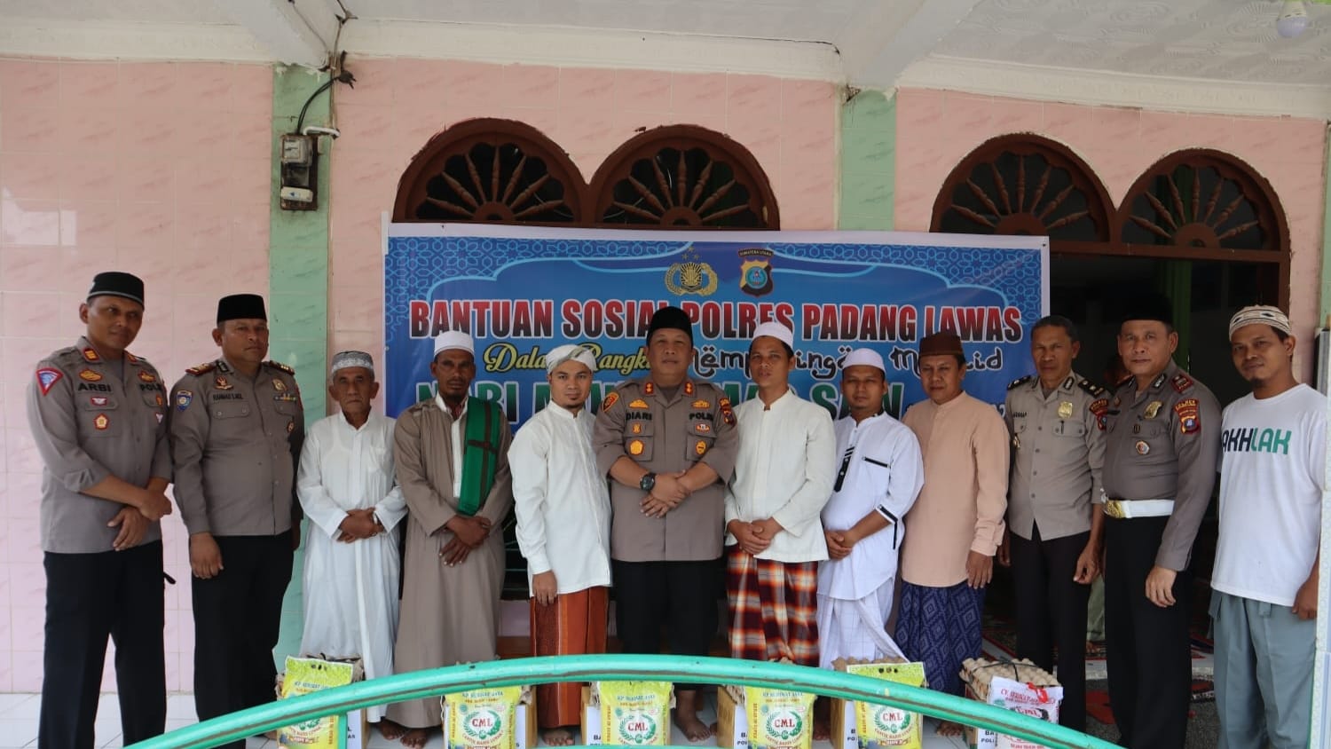 PADANGLAWAS (Waspada): Dalam rangka peringatan Maulid Nabi Muhammad SAW 1445 H/2023, Polres Padanglawas berbagi dengan Nazir masjid dengan memberi bantuan paket sembako.