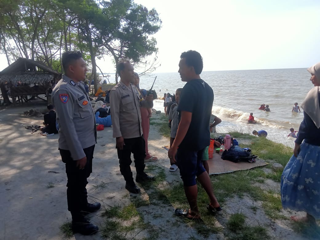 PANTAI LABU (Waspada.id): Personel Polsek Pantai Labu melakukan pemantauan dan pengamanabdi sejumlah objek wisata pantai di daerah itu pada momen libur Idul Fitri guna memastikan keamanan dan kenyamanan pengunjung tetap terjaga, Minggu (22/3/26).