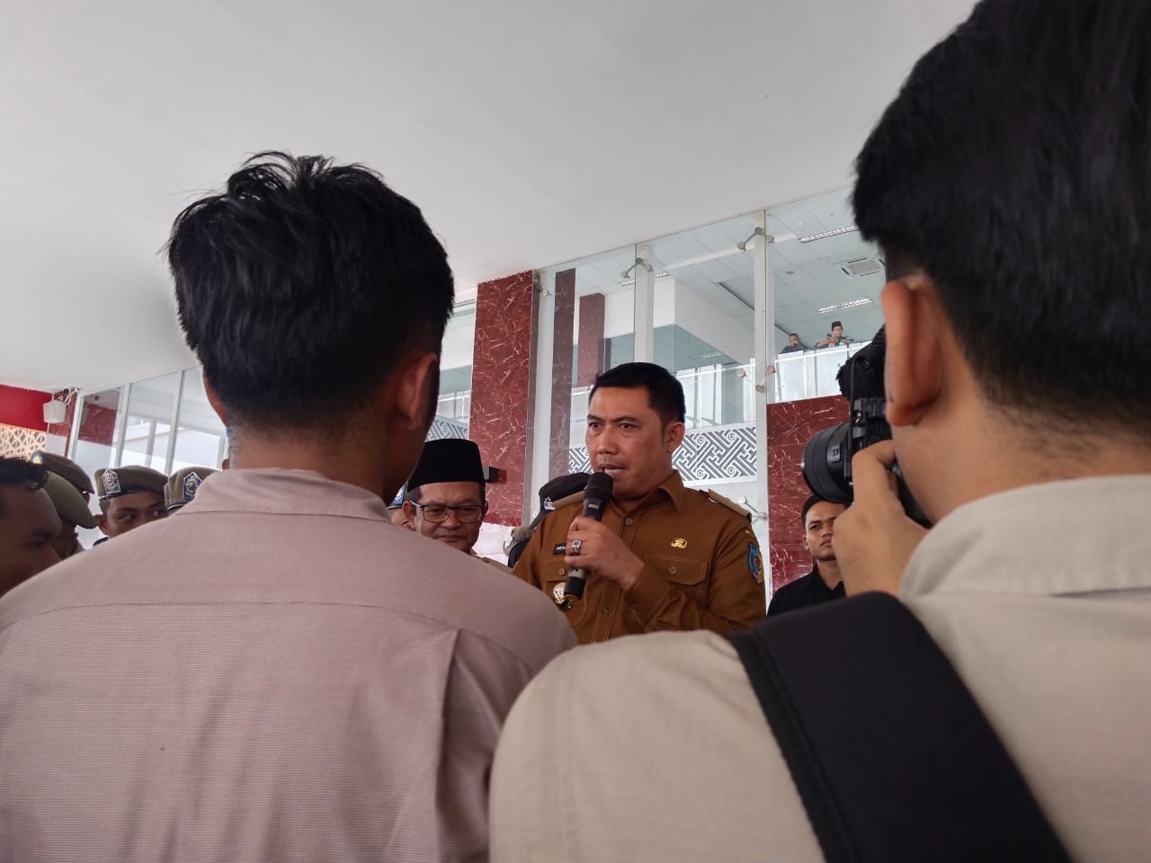 Penjabat (Pj) Bupati Batubara H. Heri Wahyudi Marpaung menyampaikan apresiasi kepada massa pengunjuk rasa dan akan segera mengevaluasi terkait permasalahan di Kecamatan Sei Balai sesuai dengan regulasi yang ada. (a18)