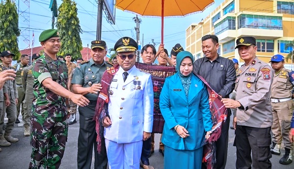 Pj. Wali Kota P.Sidimpuan H Letnan Dalimunthe, SKM, M.Kes disambut dengan tradisi mangulosi secara adat oleh Forkopimda dan Pimpinan OPD di lingkungan Pemko Padangsidimpuan yang digelar di Kantor Wali Kota Jl. Sudirman No 2, P.Sidimpuan.