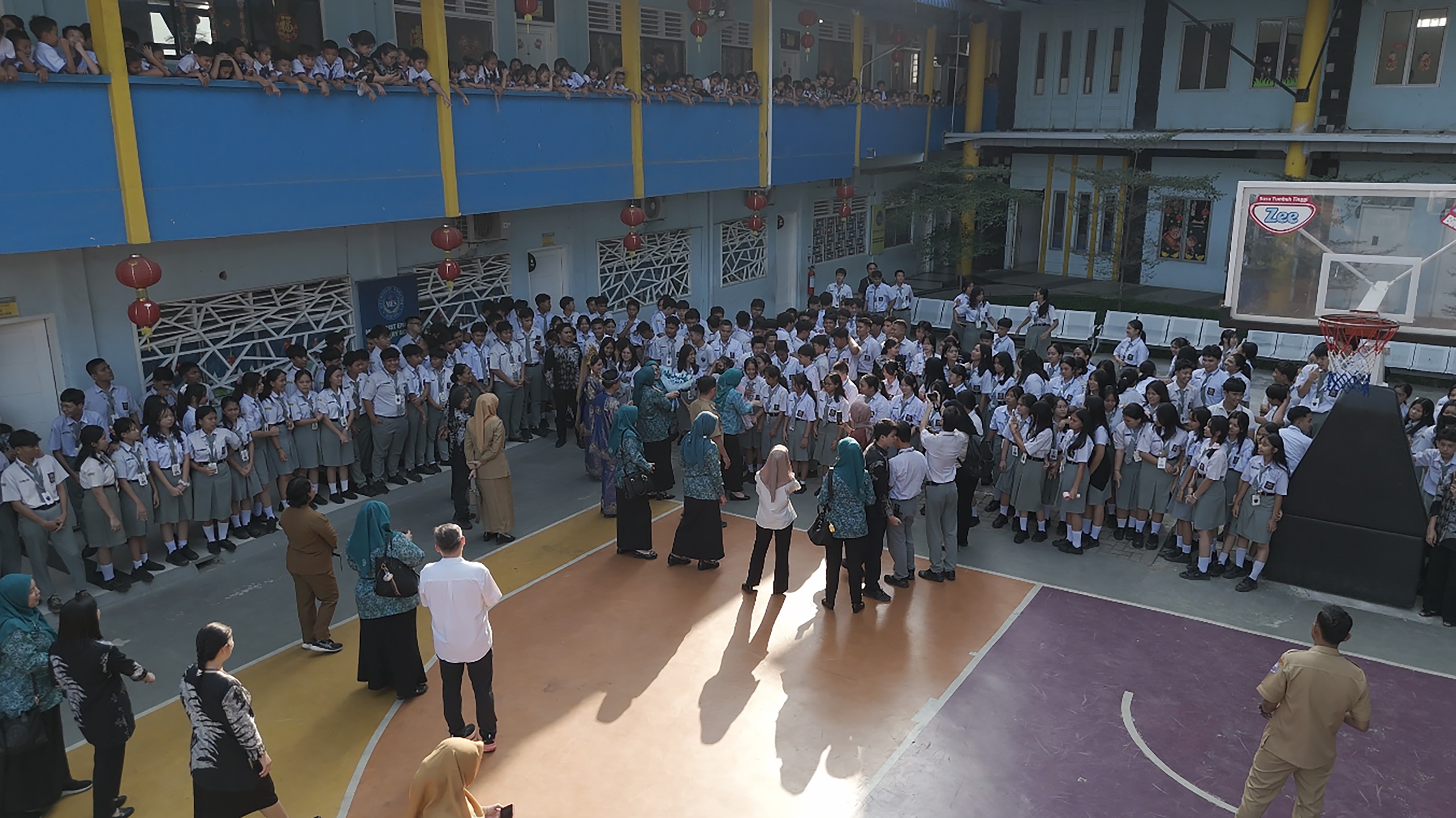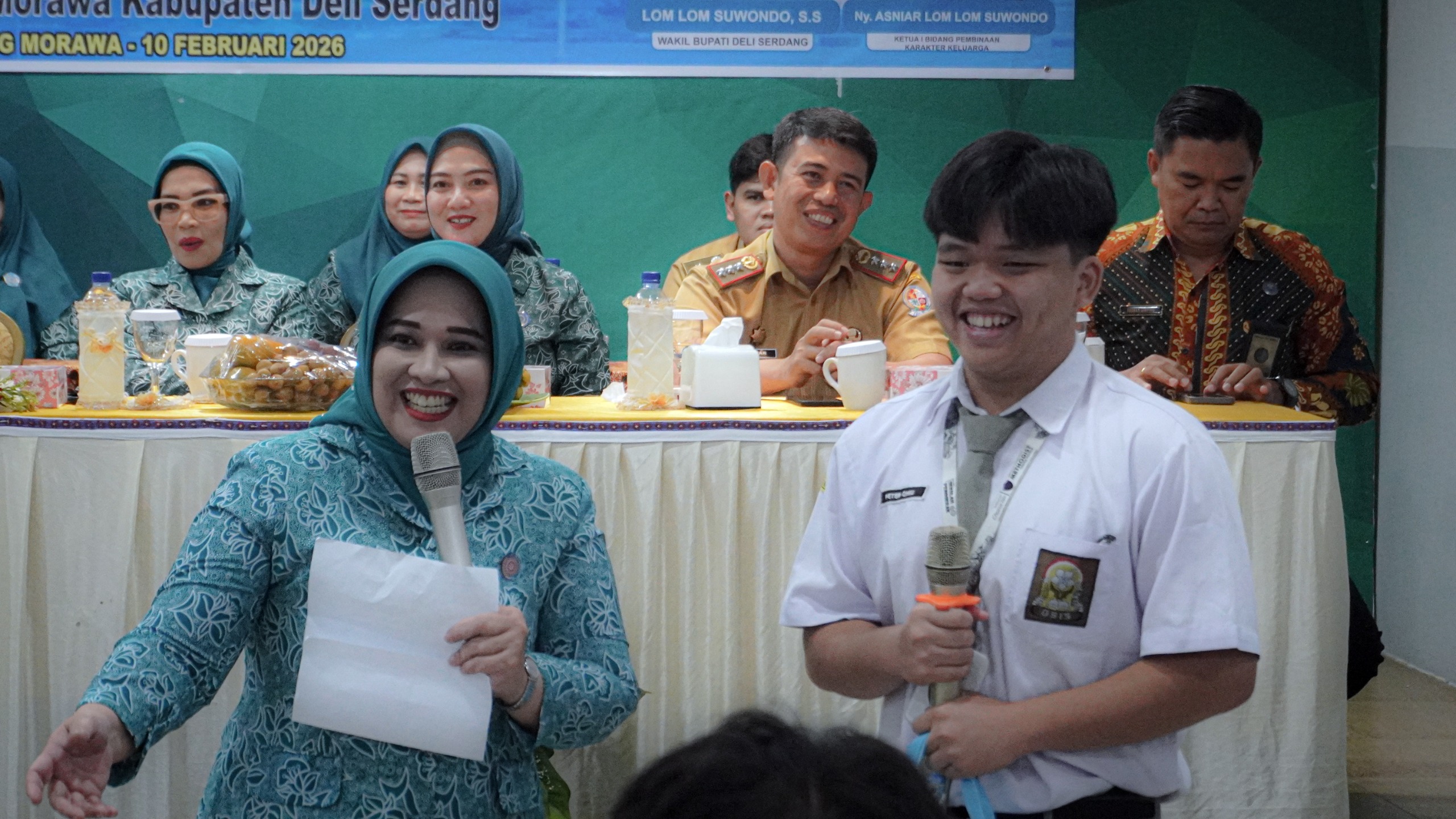 Rombongan TP PKK Kabupaten Deliserdang yang dipimpin Ketua TP PKK, Ny. Hj. Jelita Asri Ludin Tambunan, bersama Ketua Bidang Pembinaan Karakter Keluarga TP PKK, Ny. Asniar Lom Lom Suwondo, tiba di lokasi dan disambut hangat dengan tarian penyambutan oleh para siswa.