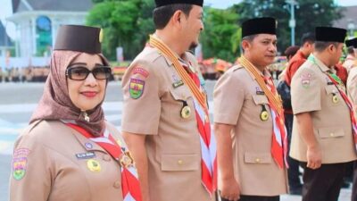 Keterangan Foto: Plt Bupati Labuhanbatu Ellya Rosa Siregar menerima penganugerahan tanda penghargaan Lencana Melati dalam upacara Peringatan Hari Pramuka ke-63 tahun 2024 yang digelar di lapangan Astaka (Dispora) Provinsi Sumatera Utara