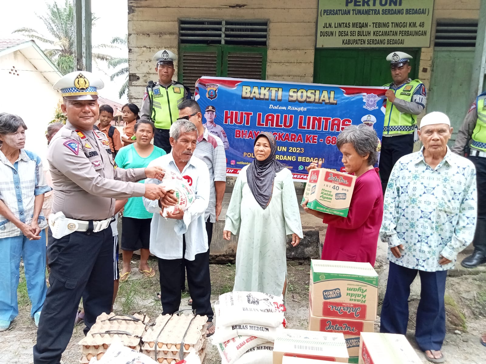 SERGAI (Waspada): Satuan Lalulintas (Satlantas) Polres Serdangbedagai (Sergai) melaksanakan bakti sosial (Baksos) ke Panti Sosial Tunanetra Desa Seibuluh, Kecamatan Perbaungan, Sergai Sabtu (9/9).