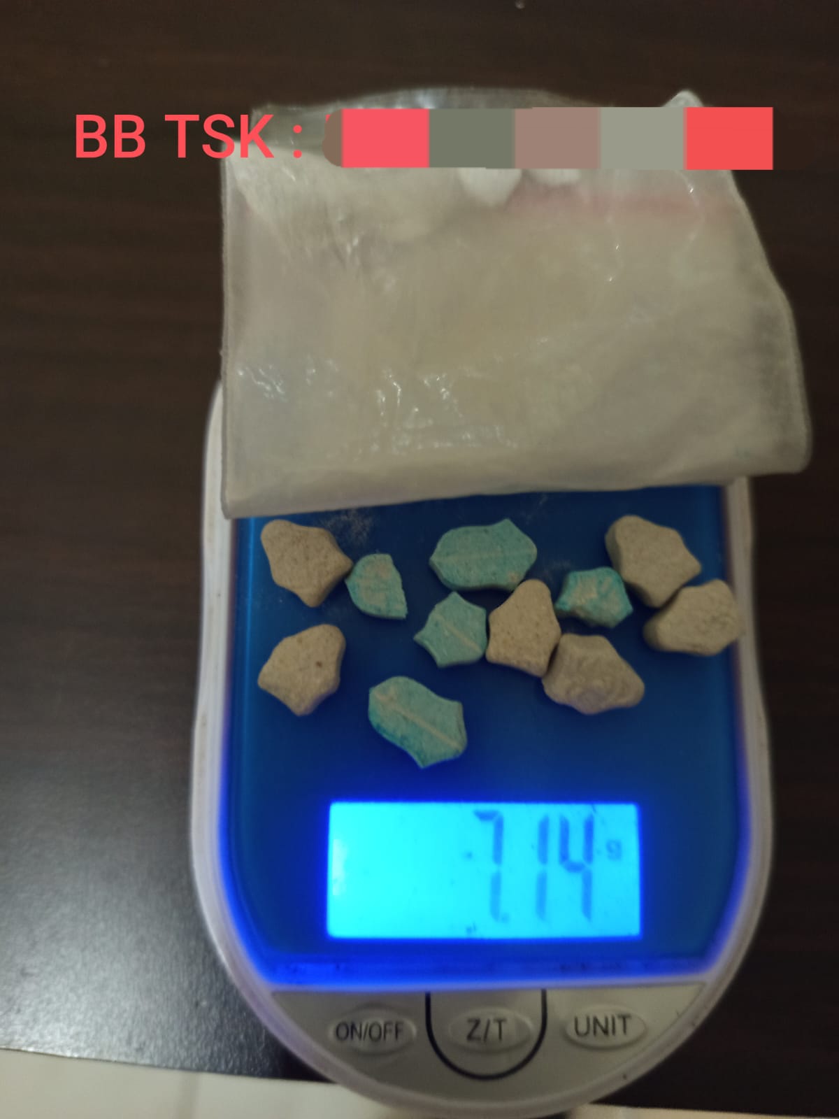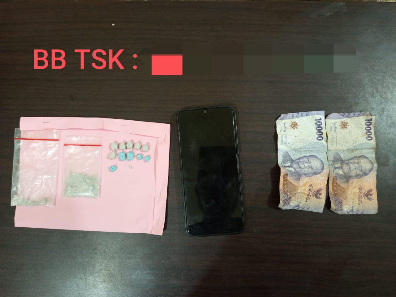 Dalam penangkapan tersebut, petugas berhasil mengamankan barang bukti berupa dua bungkus plastik klip bening yang di dalamnya diduga terdapat narkotika jenis pil ekstasi sebanyak sepuluh butir dan serbuk ekstasi yang terdapat di dalam plastik klip bening dengan brutto 7,14 gram, dan satu unit hand phone android merk Vivo warna hitam.