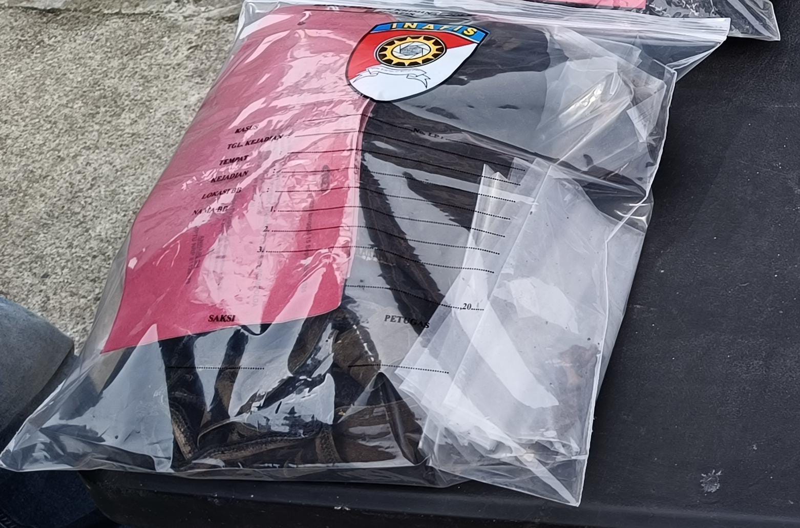 Kapolres juga mengungkap barang yang ditemukan bersama kerangka berupa, gelang besi ,pakaian baju kaos, celana panjang dan celana dalam serta Handphone merk nokia