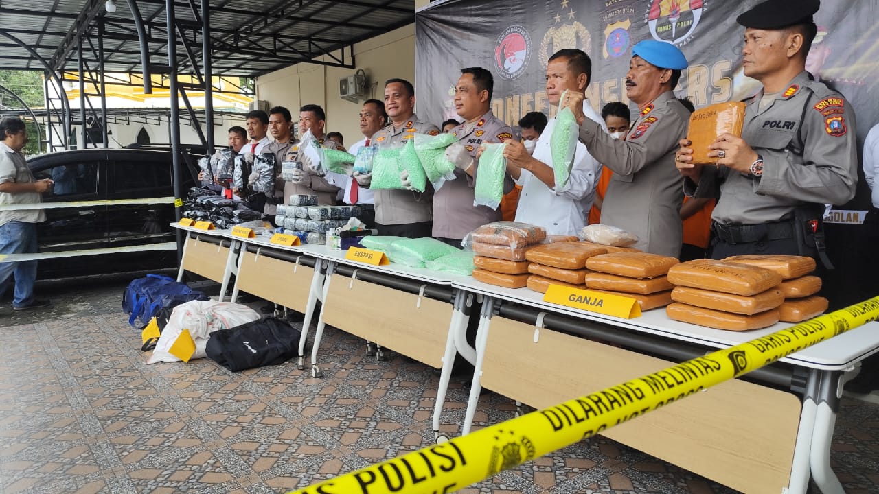 BATUBARA (Waspada.id): Polres Batubara mengungkap peredaran narkoba antar provinsi dengan menyita 28,135 kg sabu dan 60.940 butir ekstasi.