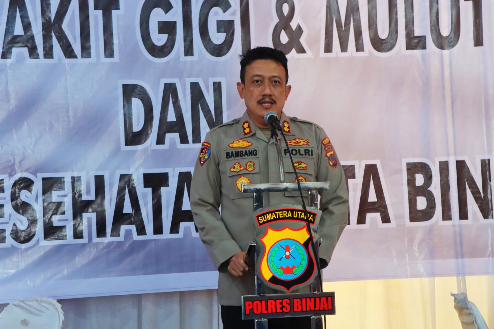 Kapolres Binjai AKBP Bambang C. Utomo, S.H.,S.I.K., M.Si., mengucapkan terima kasih kepada Direktur RS. Gigi dan Mulut USU (RSGM) Drg. Siti Salmiah, Sp.KGA, subps, KKA. FICD, Kadis kesehatan kota Binjai dr. Sugianto, S.PoG, MKM, atas suport dan dukungannya sehingga dapat terlaksananya kegiatan bakti kesehatan di Polres Binjai.