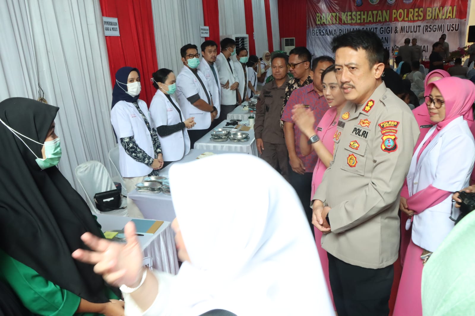 Kapolres Binjai AKBP Bambang C. Utomo, S.H.,S.I.K., M.Si., mengucapkan terima kasih kepada Direktur RS. Gigi dan Mulut USU (RSGM) Drg. Siti Salmiah, Sp.KGA, subps, KKA. FICD, Kadis kesehatan kota Binjai dr. Sugianto, S.PoG, MKM, atas suport dan dukungannya sehingga dapat terlaksananya kegiatan bakti kesehatan di Polres Binjai.