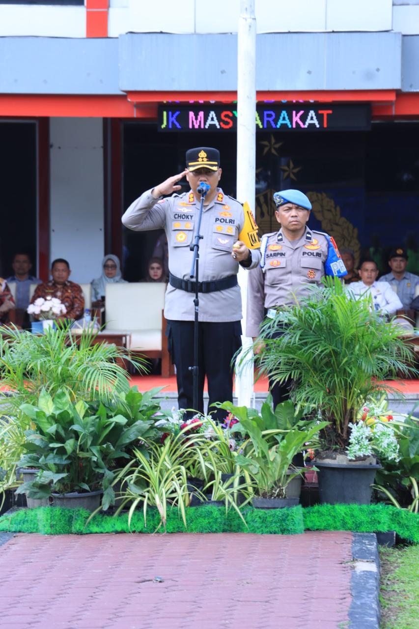 Kapolres Labuhanbatu Choky menekankan pentingnya sinergi dan soliditas seluruh personel dalam pelaksanaan Operasi Lilin Toba 2025.