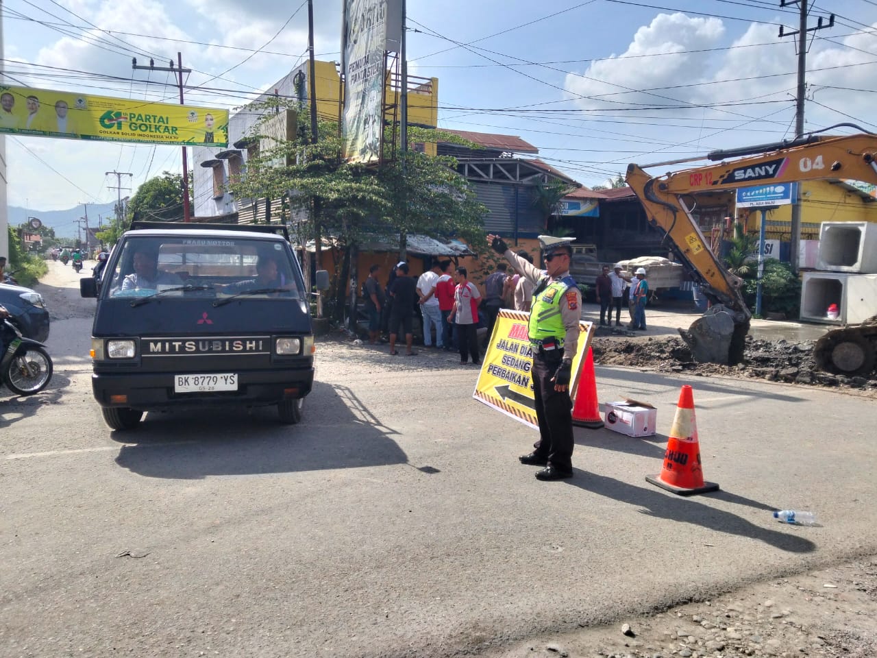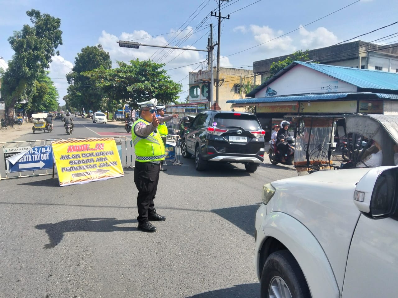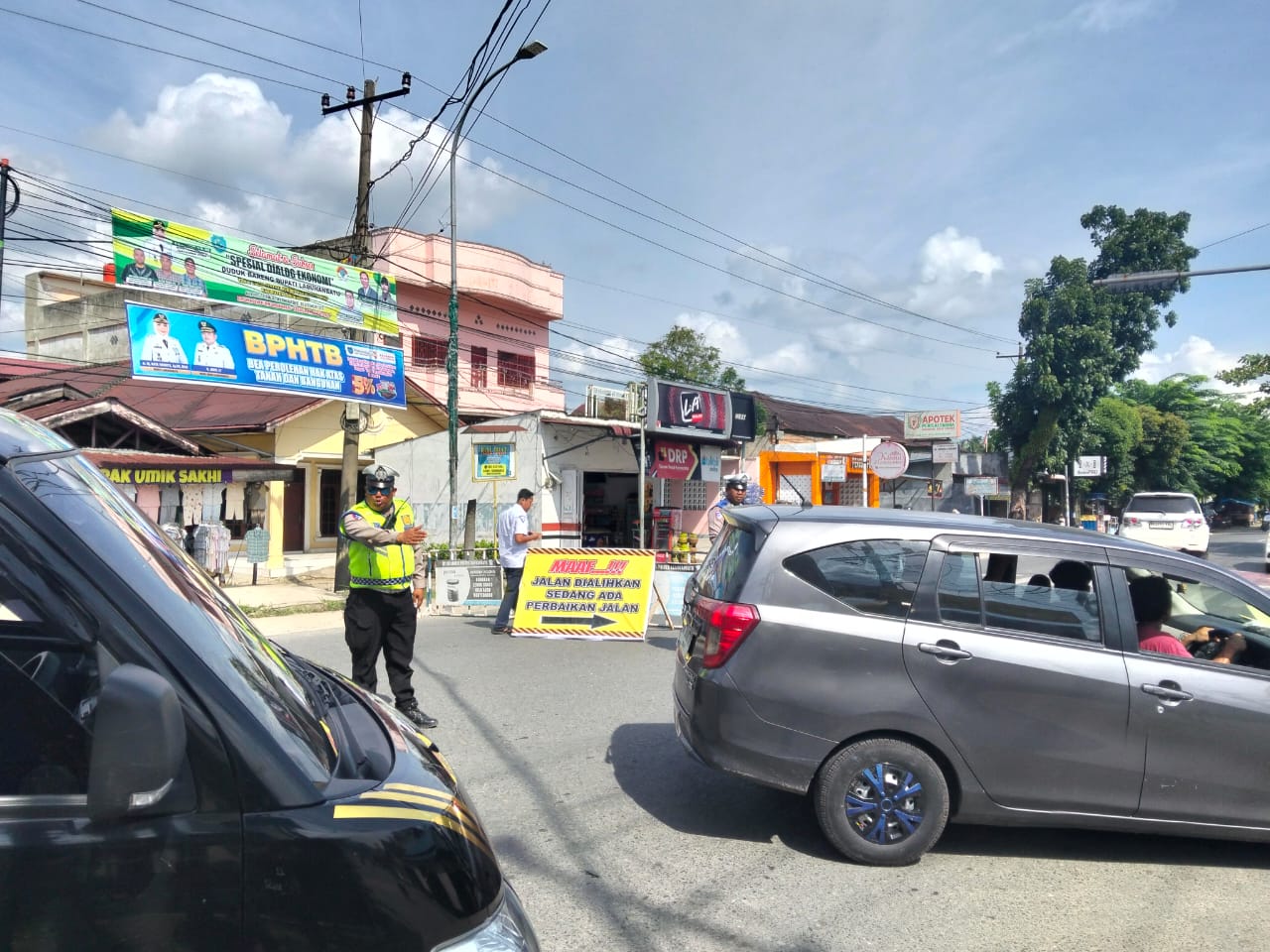 RANTAUPRAPAT (Waspada.id): Satuan Lalulintas Polres Labuhanbatu melakukan rekayasa pengalihan arus lalulintas di Jalan SM Raja selama 3 hari.