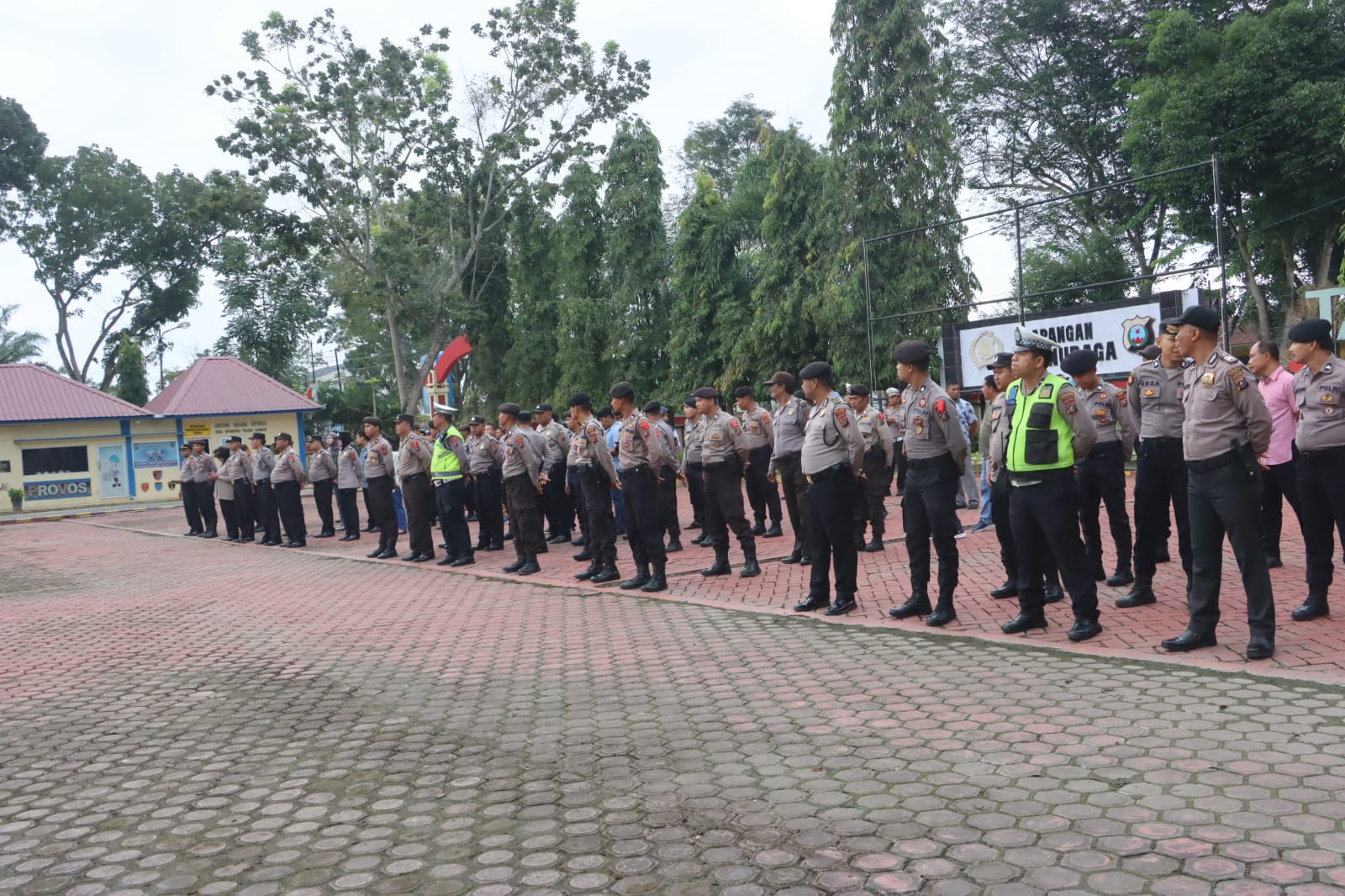 Kapolres Langkat AKBP Faisal Rahmat HS, SIK. SH. MH melalui Kabag Ops Polres Langkat AKP Sahrial Sirait, SH. MH memimpin pelaksanaan apel sebelum pelaksanaan giat patroli Harkamtibmas OMB dan Pengaturan Arus Lalulintas di jajaran wilayah hukum Polres Langkat.