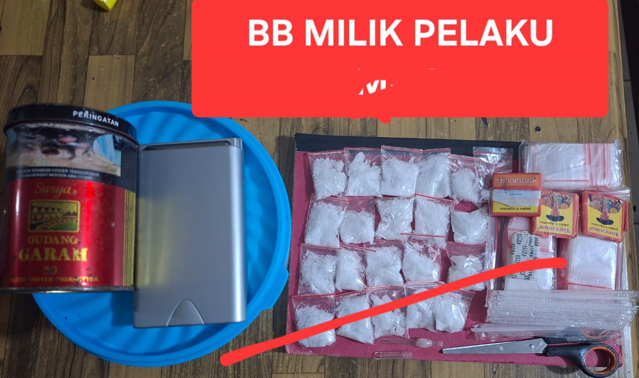 Sekitar pukul 12.16 WIB, tim gabungan langsung melakukan penindakan di lokasi dan mengamankan seorang pengedar berinisial IL alias Id, 32, warga Desa Sikapas. Dari tangan pelaku, petugas menyita 23 plastik klip kecil berisi sabu dengan berat bruto 2,24 gram, uang tunai Rp186.000, serta dua unit ponsel.