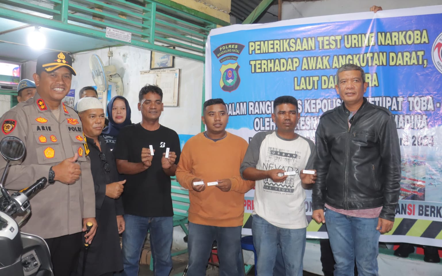 MANDAILING NATAL (Waspada): Polres Mandailing Natal (Madina) melakukan test urine terhadap sopir angkutan umum. Test urine ini secara serentak dilakukan bersamaan di seluruh jajaran Polsek wilayah hukum Madina, Selasa (9/4).