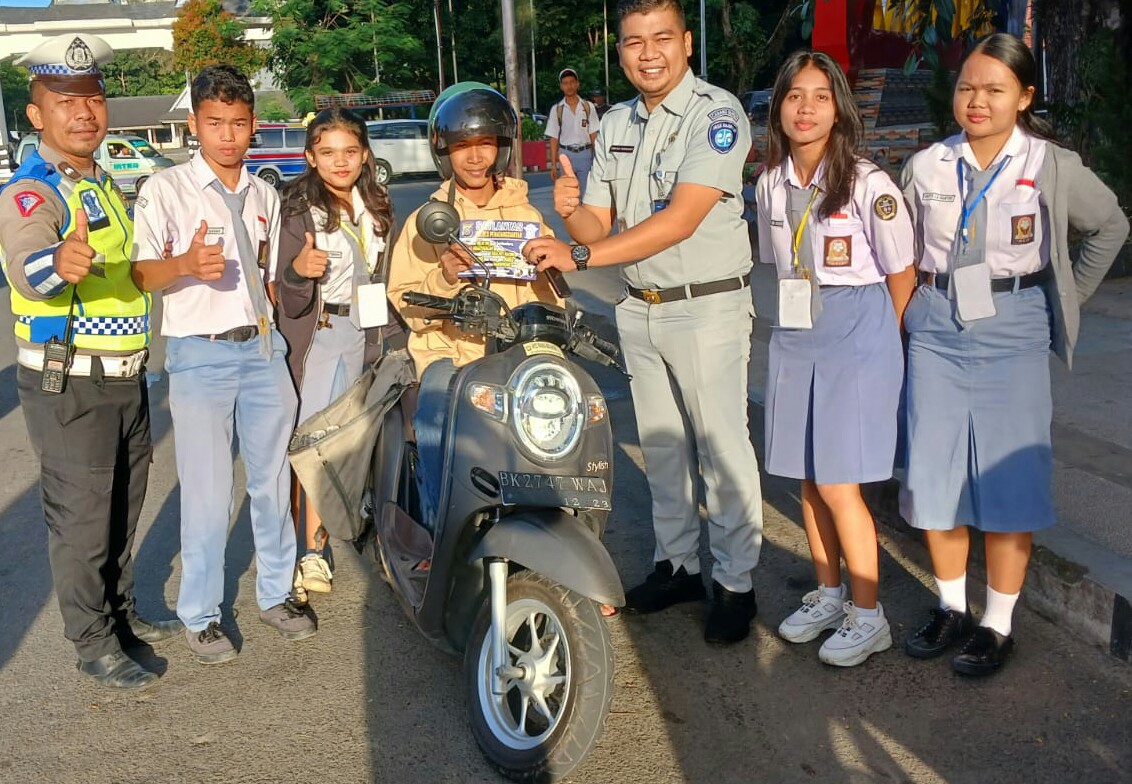PEMATANGSIANTAR (Waspada): Polres melalui Sat Lantas dan PT Jasa Raharja mengedukasi masyarakat pengguna kendaraan agar tertib administrasi dan keselamatan berlalu lintas di Kota Pematangsiantar.
