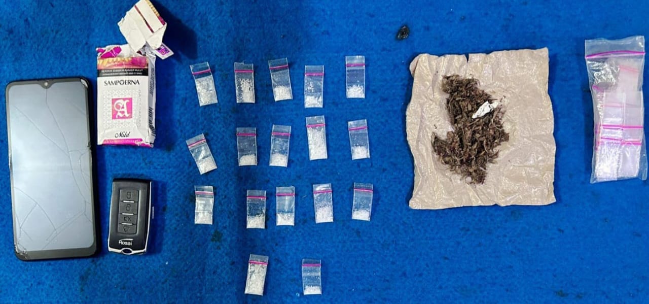 Hasil pemeriksaan, personel Sat Resnarkoba menemukan barang bukti berupa 17 paket sabu seberat 2,89 gram dan satu bungkus ganja seberat 4,54 gram, satu bungkus plastik klip kosong, satu timbangan digital dan satu HP merk Real Me dari IN.