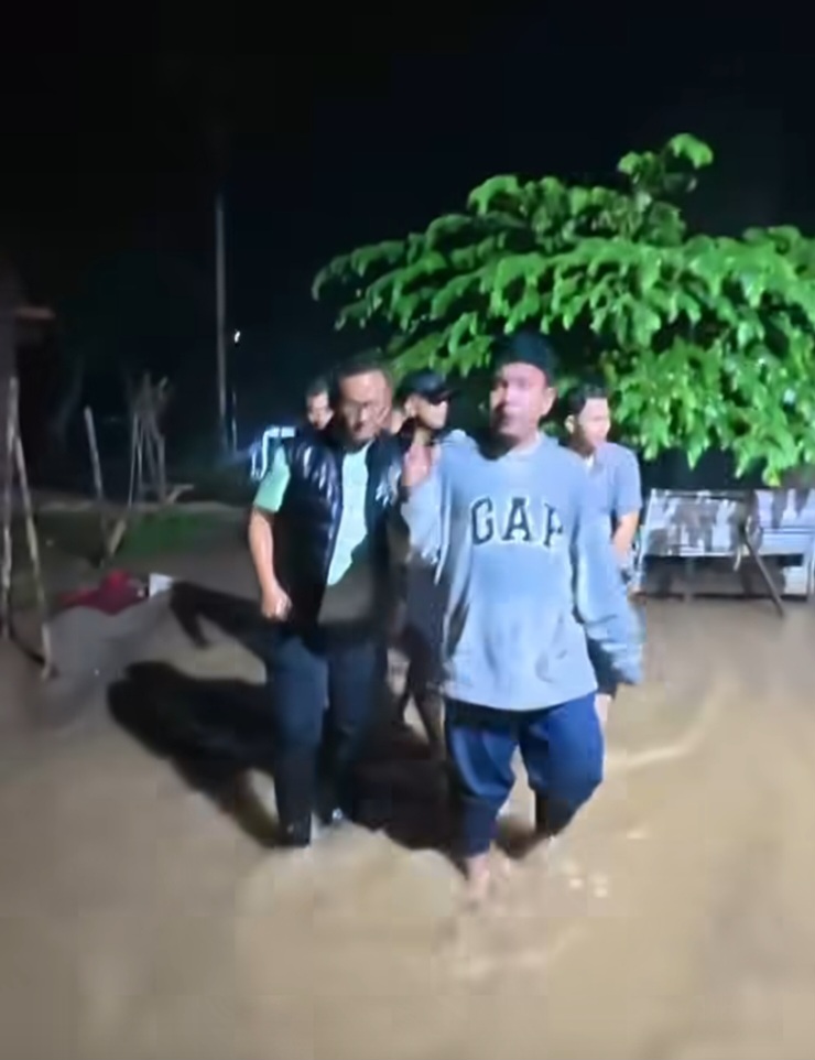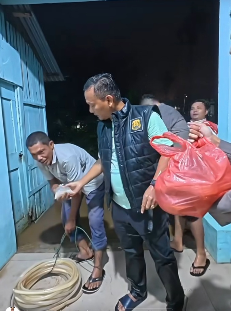 Iptu Junaidi Pardede, SH, MH dan Ipda Bobby Arye Bintoro, S.H., M.Psi., memimpin langsung pengecekan lokasi banjir akibat curah hujan tinggi yang merendam 10 rumah warga.