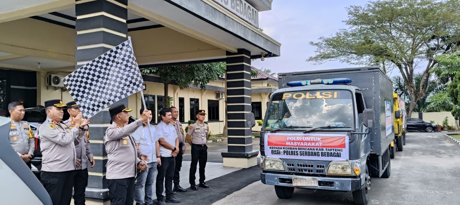 SERGAI (Waspada.id): Polres Serdang Bedagai (Sergai) menyalurkan tiga truk bantuan bagi korban banjir bandang di wilayah Polres Tapanuli Tengah, Sibolga, dan Langkat, Rabu (10/12/2025).
