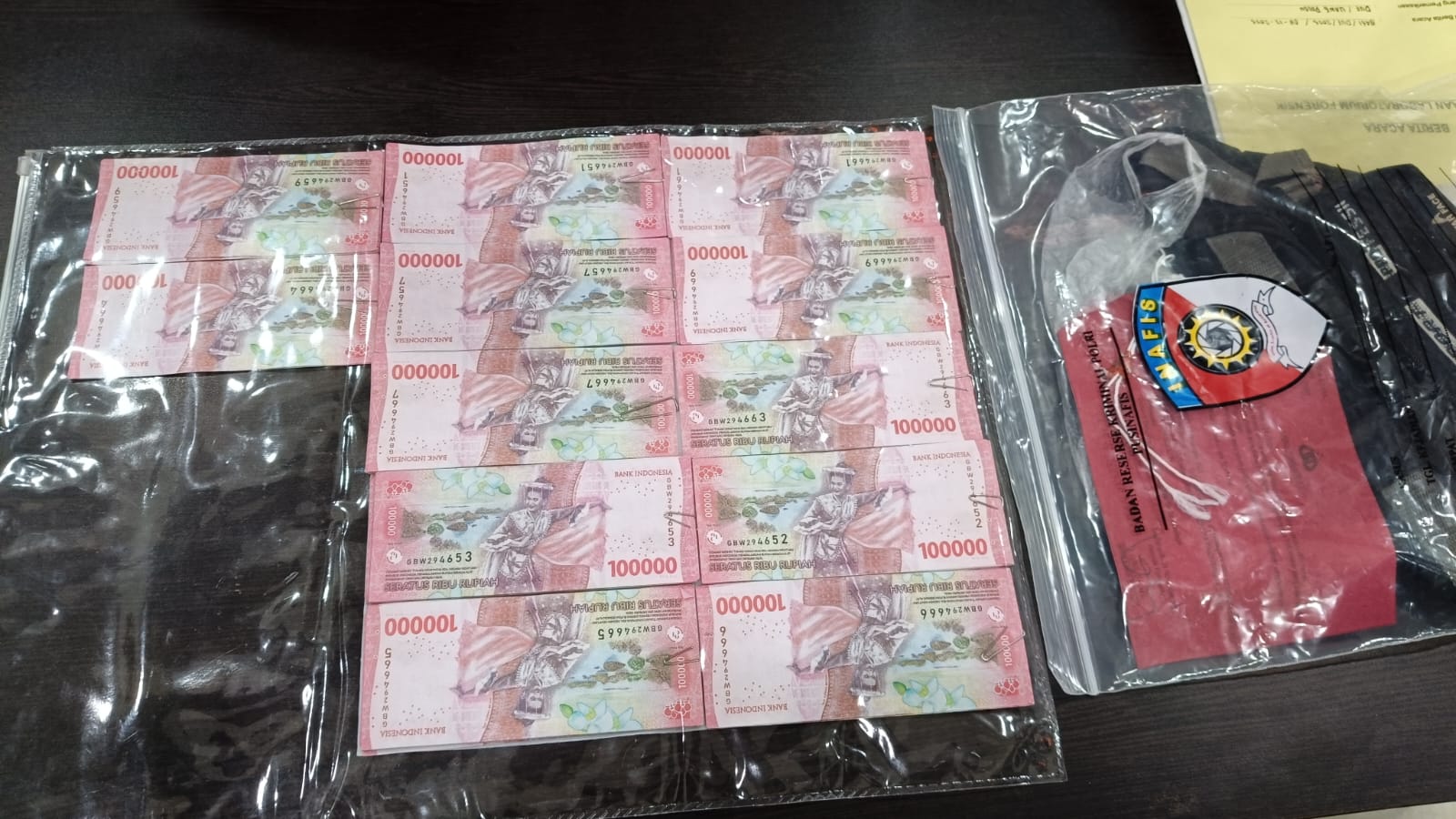 Laporan tersebut ditindaklanjuti Sat Reskrim Polres Sergai dengan mengamankan tersangka pada malam hari. Dari dalam tas hitam milik tersangka, polisi menyita 106 lembar uang palsu lainnya yang dibungkus plastik putih, sehingga total barang bukti mencapai 116 lembar.