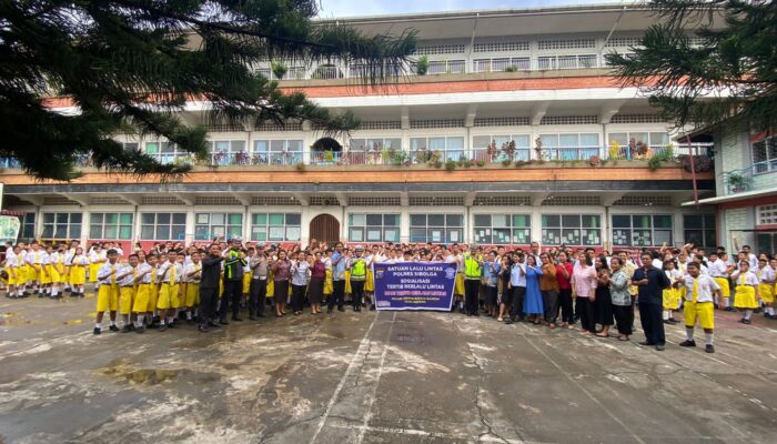 SIBOLGA (Waspada.id) : Dalam rangka meningkatkan kesadaran dan disiplin berlalu lintas sejak usia dini, Satuan Lalu Lintas (Sat Lantas) Polres Sibolga melaksanakan kegiatan “Police Goes To School” di SMP Swasta Fatimah Sibolga, Kamis (13/11) pukul 07.00 WIB hingga selesai.