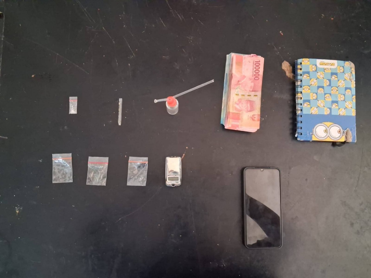 Petugas menangkap tersangka saat sedang duduk menunggu pembeli di pinggir jalan. Selanjutnya dilakukan penggeledahan di tempat tinggal tersangka dan berhasil diamankan barang bukti berupa sabu seberat brutto 0,14 gram, timbangan digital, alat hisap, uang tunai Rp5 juta, handphone, serta buku catatan transaksi penjualan narkoba.