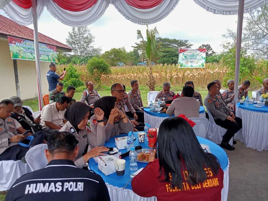 BERINGIN (Waspada.id): Jajaran Polresta Deliserdang mengikuti panen raya jagung kuartal 4 tahun 2025 secara zoom yang dipusatkan di Desa Sukamahi, Kampung Tempong Gunung, Kecamatan Cikarang Pusat, Bekasi, Jawa Barat, Kamis (8/1/26).