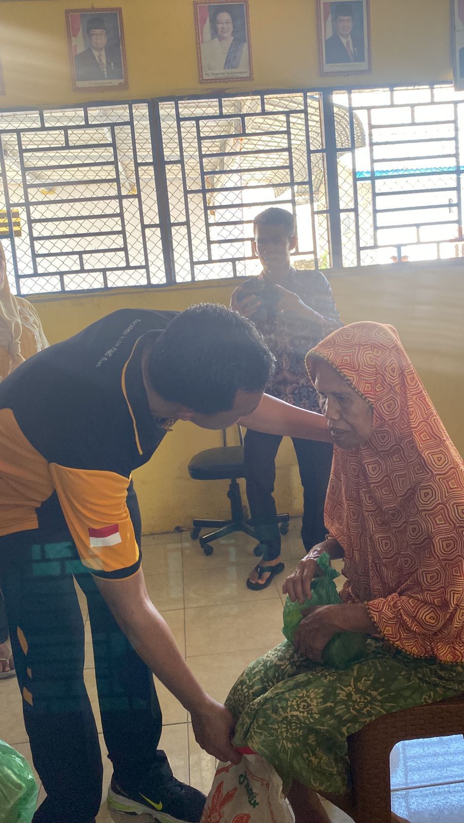 Seusai melaksanakan gotong royong, AKP Jonni H Damanik terlihat langsung melanjutkan kegiatannya dengan membagikan sembako kepada lansia dan kaum dhuafa di Aula Desa Tanjung Kubah.