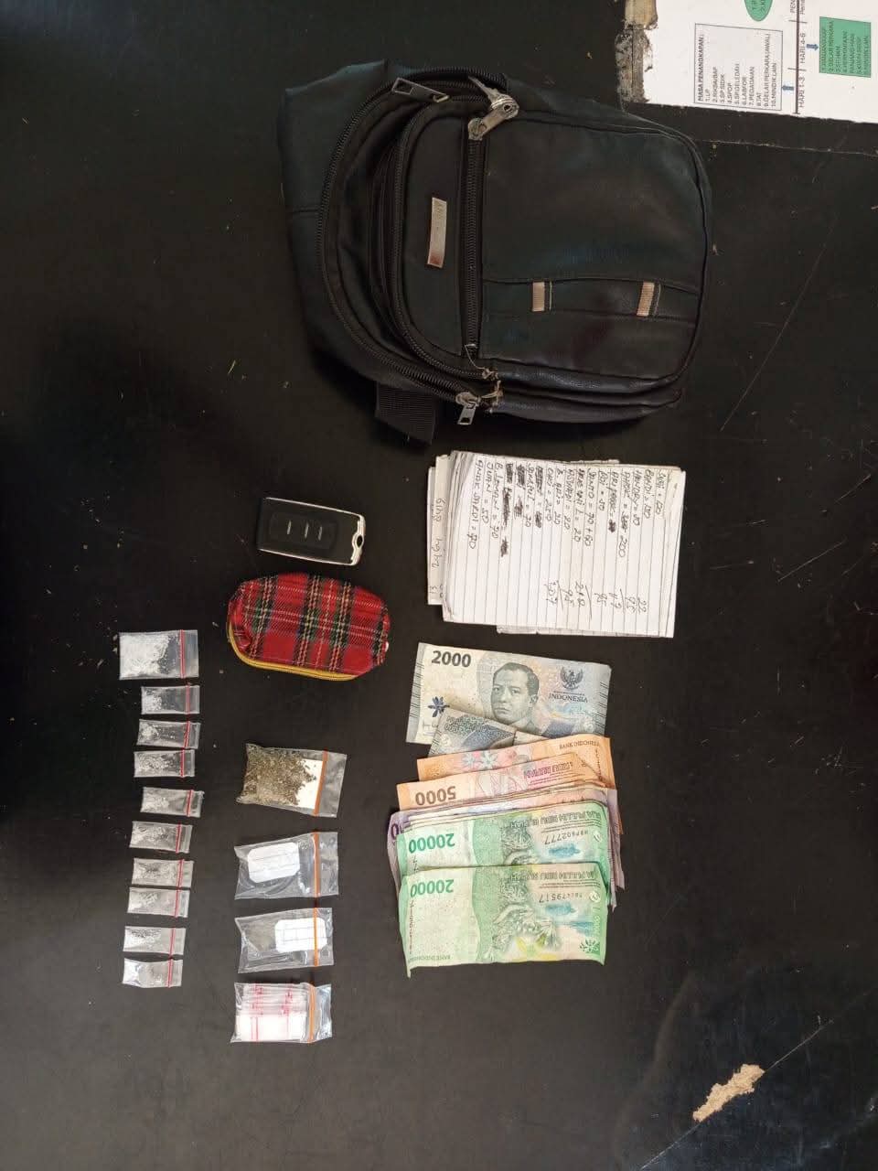 Selain narkoba, polisi juga menyita timbangan digital, buku catatan transaksi penjualan, dan uang tunai Rp134.000. “Total barang bukti yang diamankan adalah ganja dengan berat bruto 2,61 gram dan sabu dengan berat bruto 2,47 gram,” jelas AKP Henry Salamat Sirait.