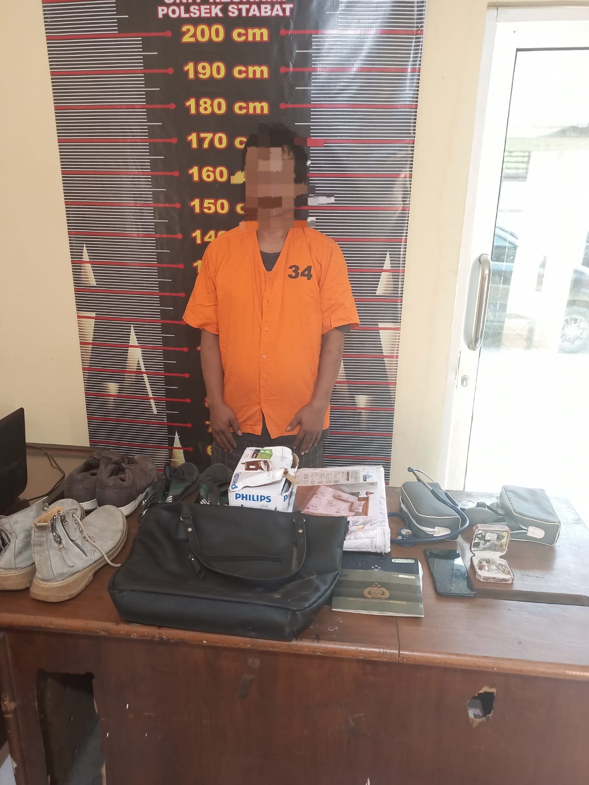 LANGKAT (Waspada): Satu pelaku pencurian rumah warga di Kelurahan Perdamaian Kecamatan Stabat Kabupaten Langkat diringkus polisi, Senin(15/1/24).