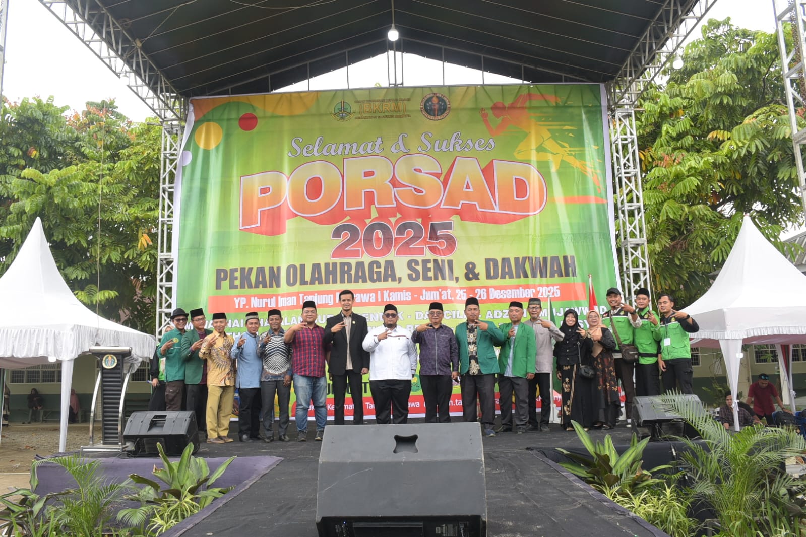 TANJUNGMORAWA (Waspada.id): Asisten I Bidang Pemerintahan dan Kesejahteraan Rakyat, Drs Zainal Abidin Hutagalung MAP membuka Pekan Olahraga, Seni, dan Dakwah (Porsad) BKRM Tanjungmorawa tahun 2025 di Yayasan Perguruan Nurul Iman, Desa Limau Manis, Kecamatan Tanjungmorawa, Kamis (25/12/25).